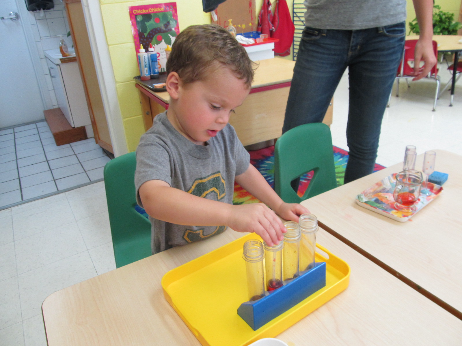 Painting with dry tempera cakes was an exploratorium activity this week.
